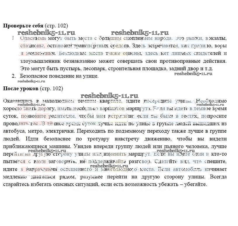 Готовая домашняя работа с ответами по ОБЖ за 5 класс Смирнов, Хренников Учебник Просвещение 2016 ФГОС - Страницы 102