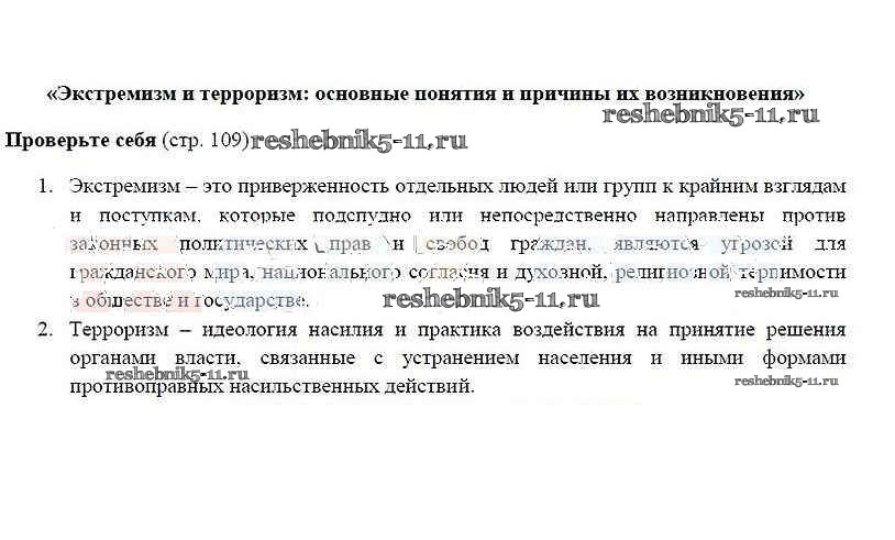 Готовая домашняя работа с ответами по ОБЖ за 5 класс Смирнов, Хренников Учебник Просвещение 2016 ФГОС - Страницы 109