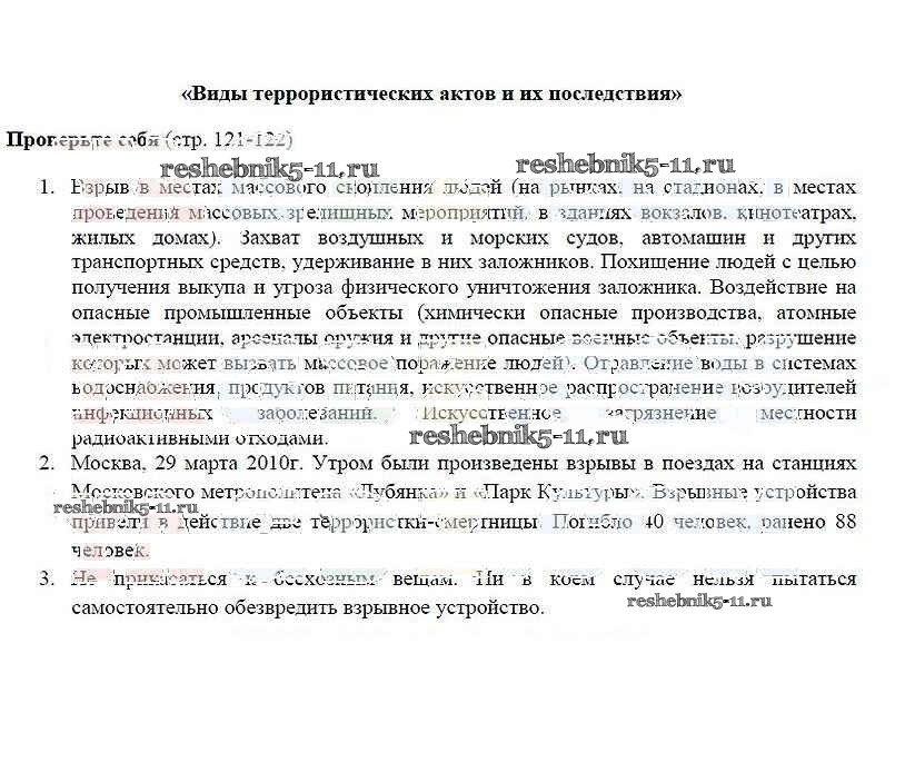 ОБЖ за 5 класс Смирнов Учебник Просвещение страница 121-122