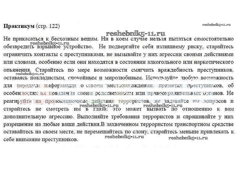 Готовая домашняя работа с ответами по ОБЖ за 5 класс Смирнов, Хренников Учебник Просвещение 2016 ФГОС - Страницы 122