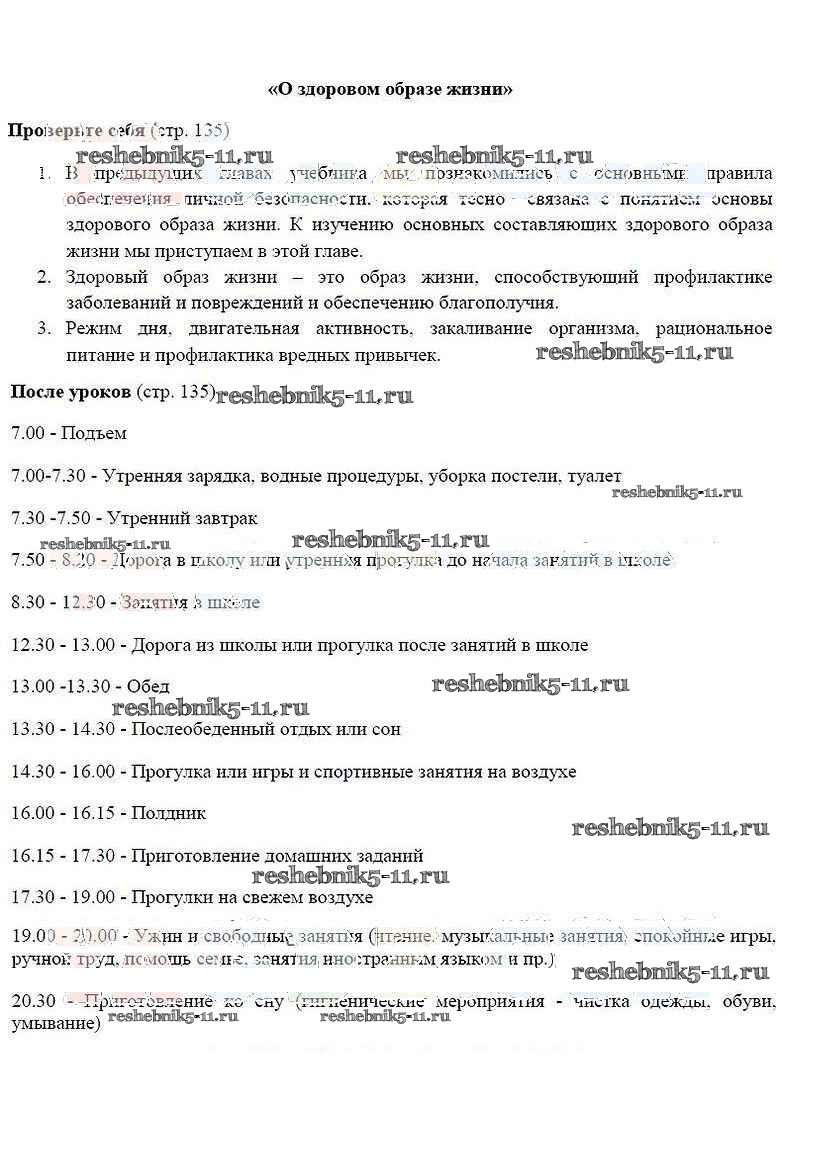 Готовая домашняя работа с ответами по ОБЖ за 5 класс Смирнов, Хренников Учебник Просвещение 2016 ФГОС - Страницы 135