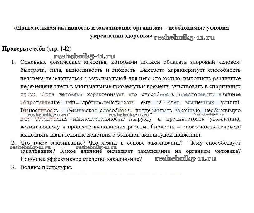 Готовая домашняя работа с ответами по ОБЖ за 5 класс Смирнов, Хренников Учебник Просвещение 2016 ФГОС - Страницы 142