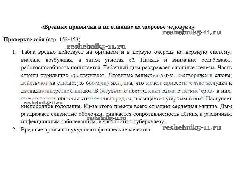 Готовая домашняя работа с ответами по ОБЖ за 5 класс Смирнов, Хренников Учебник Просвещение 2016 ФГОС - Страницы 152-153