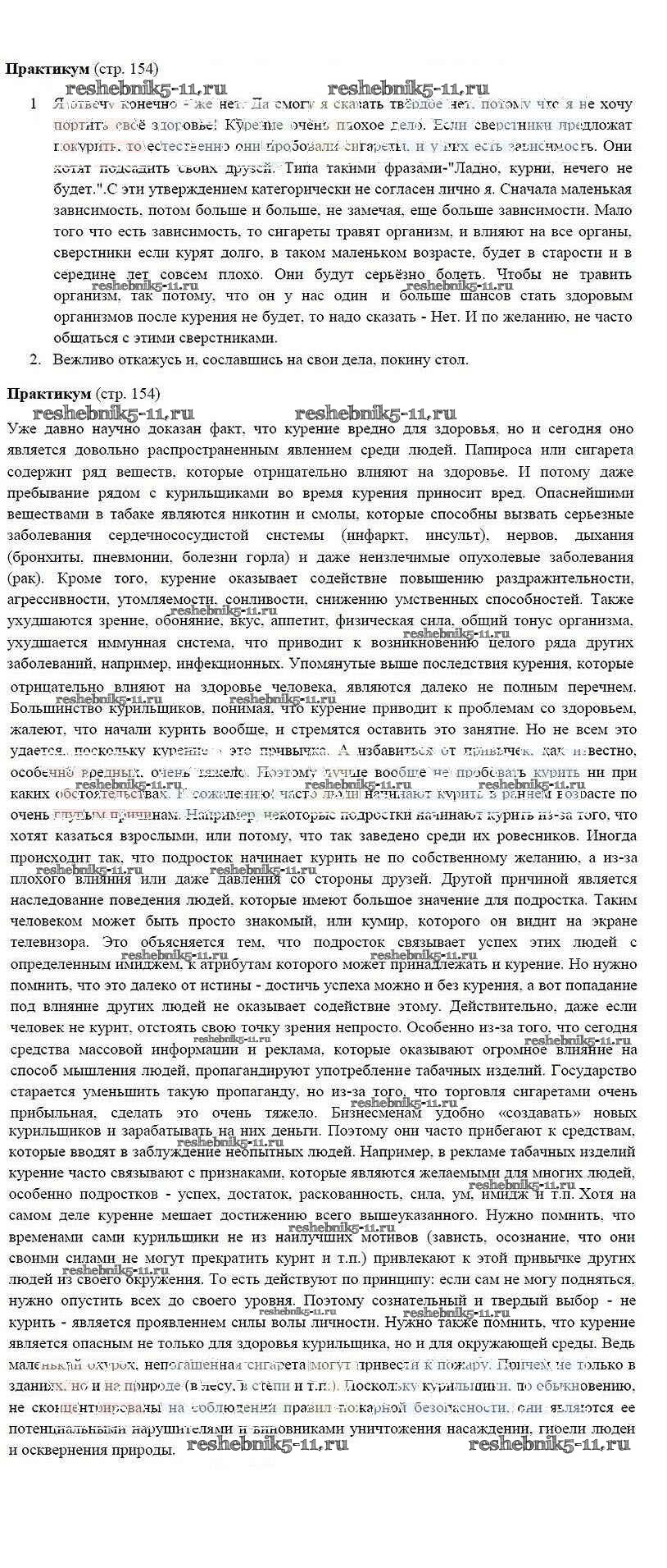 Готовая домашняя работа с ответами по ОБЖ за 5 класс Смирнов, Хренников Учебник Просвещение 2016 ФГОС - Страницы 154
