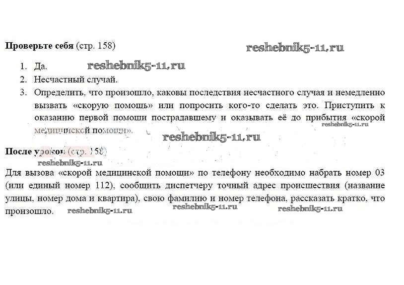 Готовая домашняя работа с ответами по ОБЖ за 5 класс Смирнов, Хренников Учебник Просвещение 2016 ФГОС - Страницы 158