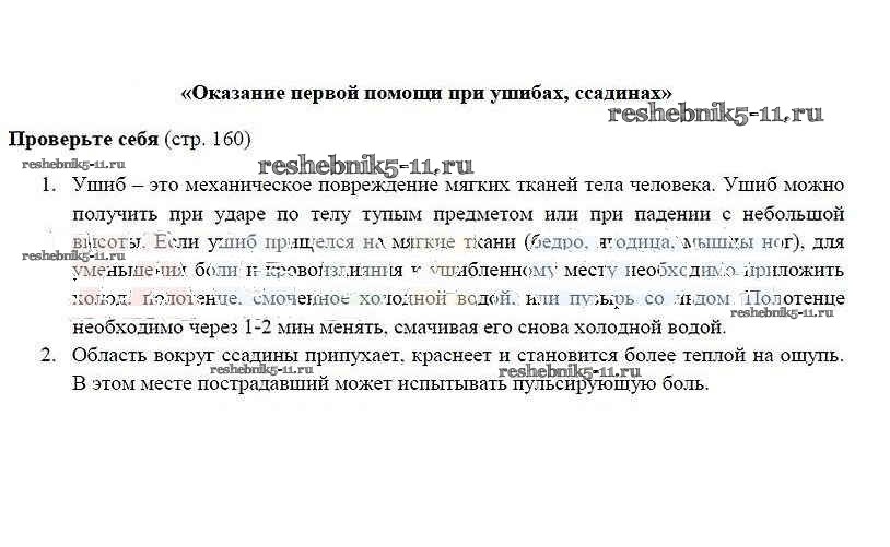 Готовая домашняя работа с ответами по ОБЖ за 5 класс Смирнов, Хренников Учебник Просвещение 2016 ФГОС - Страницы 160