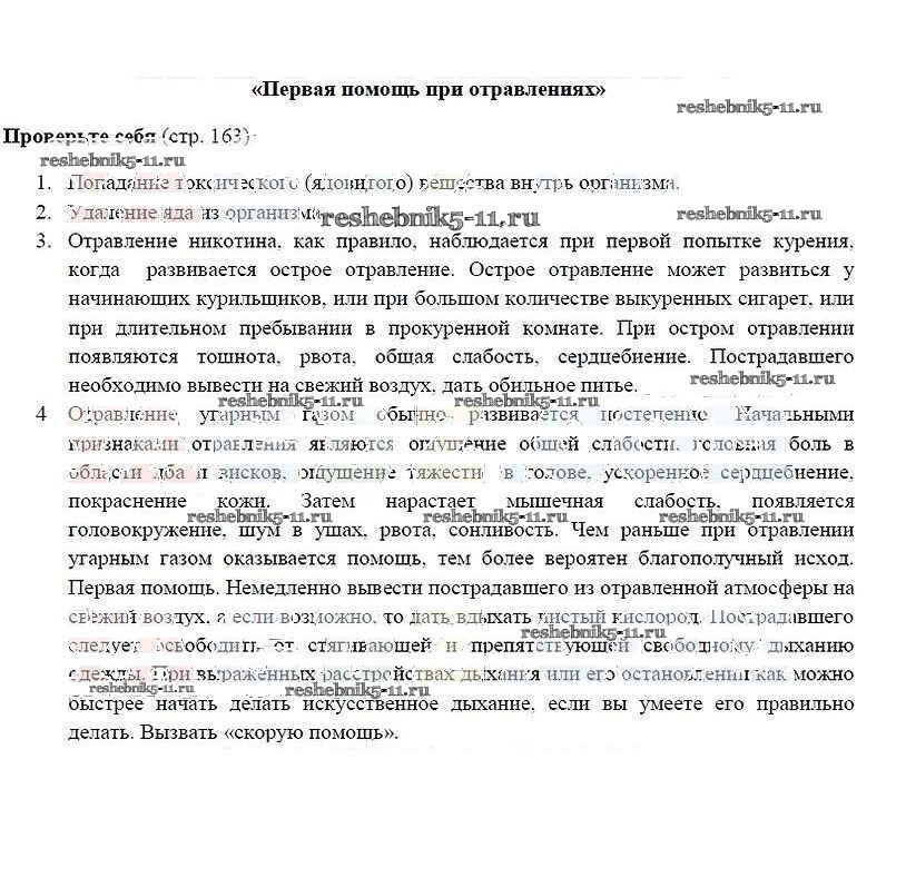 Готовая домашняя работа с ответами по ОБЖ за 5 класс Смирнов, Хренников Учебник Просвещение 2016 ФГОС - Страницы 163