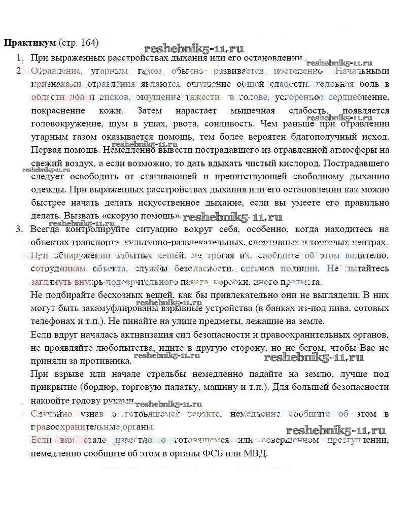 Готовая домашняя работа с ответами по ОБЖ за 5 класс Смирнов, Хренников Учебник Просвещение 2016 ФГОС - Страницы 164