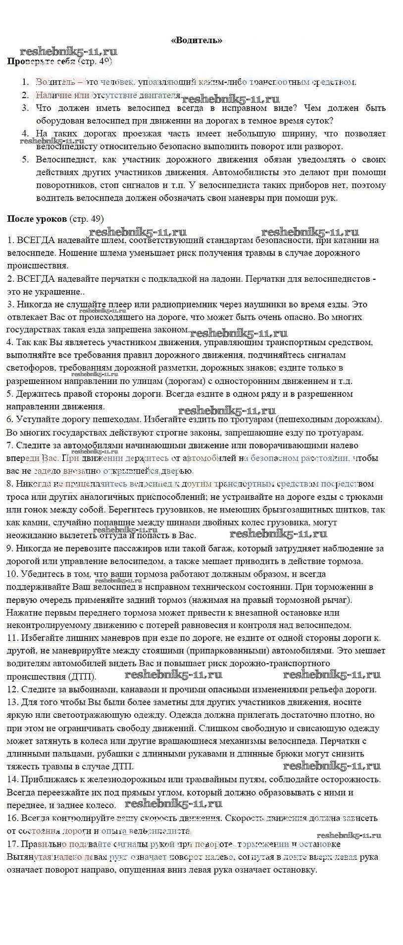 Готовая домашняя работа с ответами по ОБЖ за 5 класс Смирнов, Хренников Учебник Просвещение 2016 ФГОС - Страницы 49