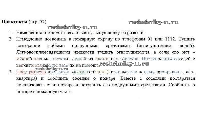Готовая домашняя работа с ответами по ОБЖ за 5 класс Смирнов, Хренников Учебник Просвещение 2016 ФГОС - Страницы 57