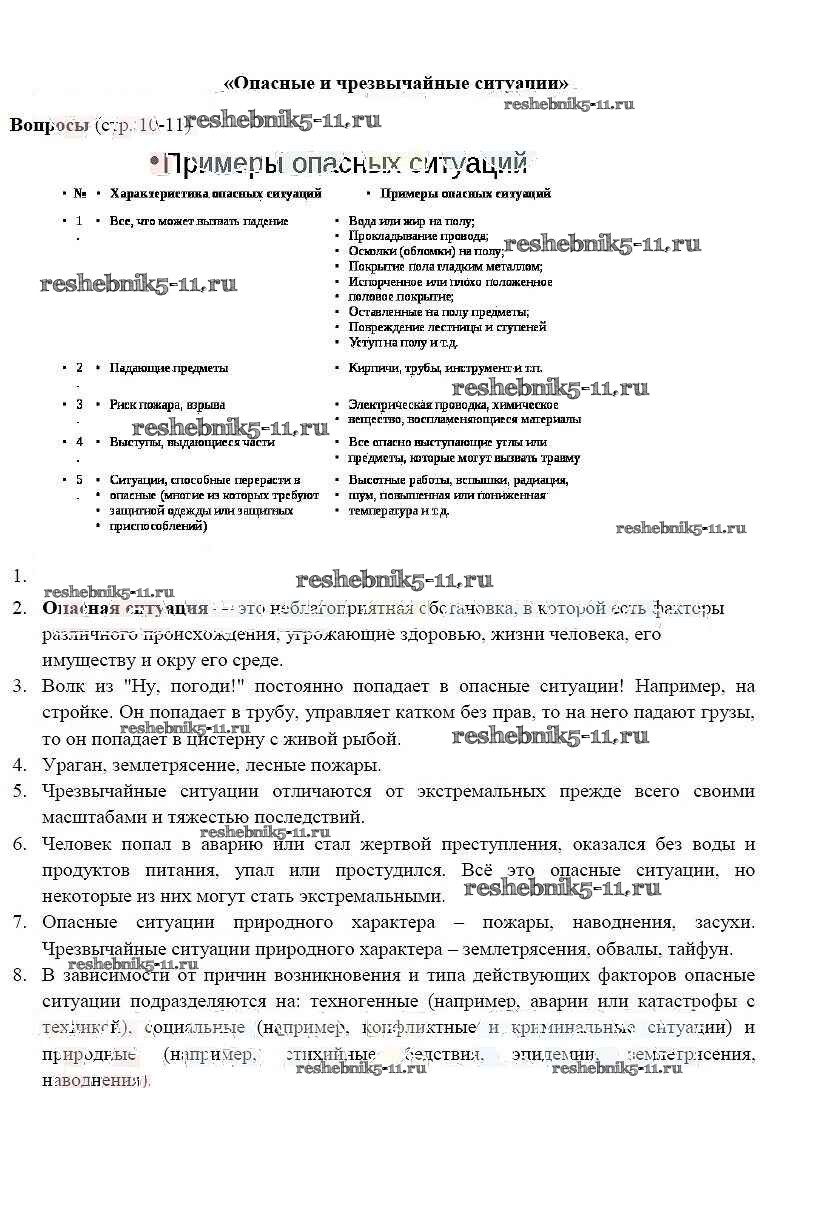 Готовая домашняя работа с ответами по ОБЖ за 5 класс Фролов, Шолох, Юрьева, Мишин Учебник Аст/Астрель 2015 ФГОС - Страницы 10-11