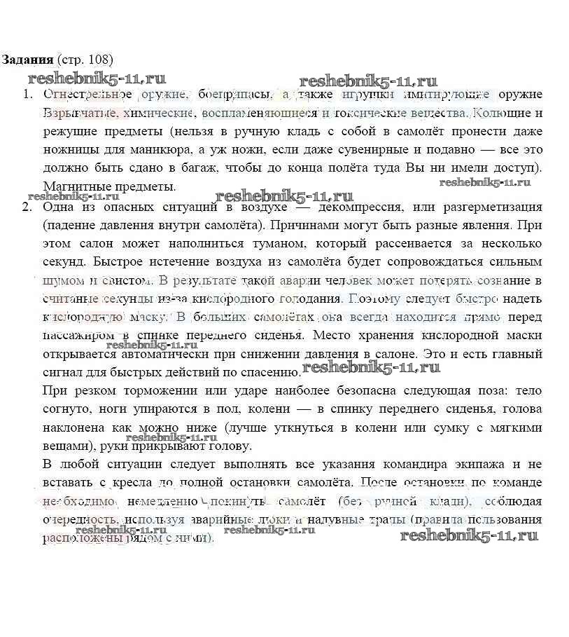 Готовая домашняя работа с ответами по ОБЖ за 5 класс Фролов, Шолох, Юрьева, Мишин Учебник Аст/Астрель 2015 ФГОС - Страницы 108