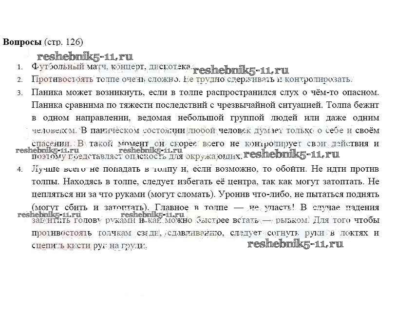 Готовая домашняя работа с ответами по ОБЖ за 5 класс Фролов, Шолох, Юрьева, Мишин Учебник Аст/Астрель 2015 ФГОС - Страницы 126