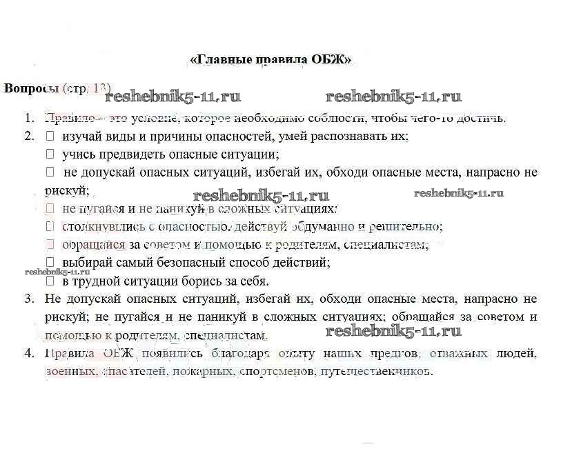 Готовая домашняя работа с ответами по ОБЖ за 5 класс Фролов, Шолох, Юрьева, Мишин Учебник Аст/Астрель 2015 ФГОС - Страницы 13