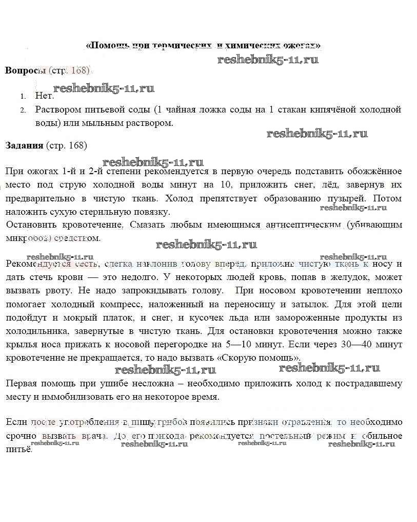 Готовая домашняя работа с ответами по ОБЖ за 5 класс Фролов, Шолох, Юрьева, Мишин Учебник Аст/Астрель 2015 ФГОС - Страницы 168