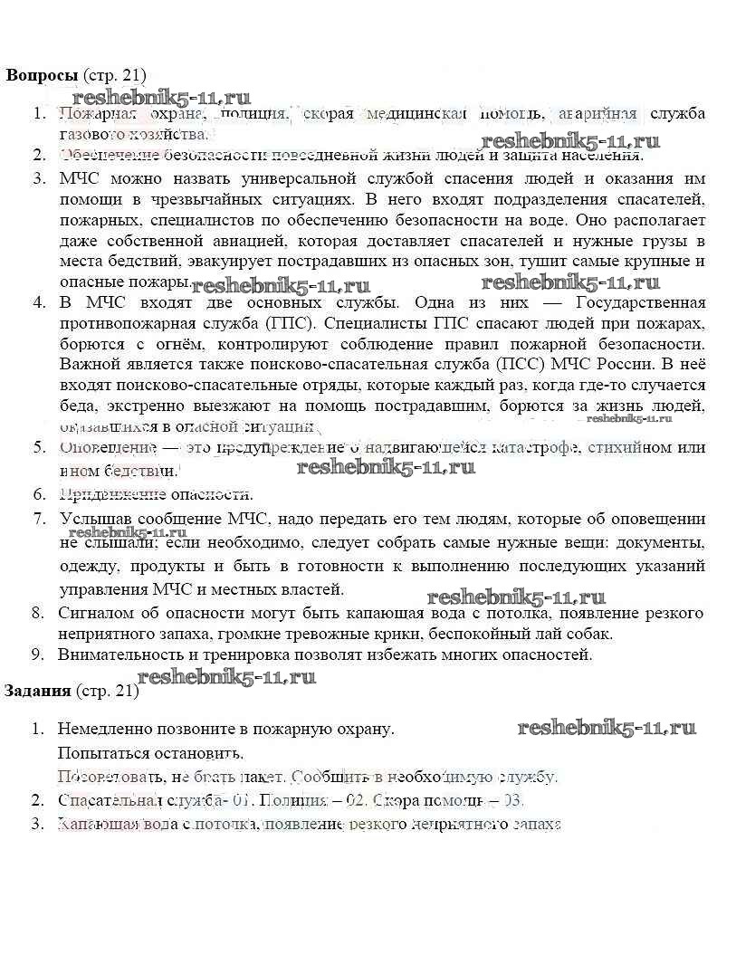Готовая домашняя работа с ответами по ОБЖ за 5 класс Фролов, Шолох, Юрьева, Мишин Учебник Аст/Астрель 2015 ФГОС - Страницы 21