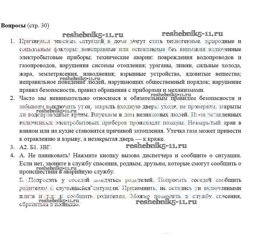Готовая домашняя работа с ответами по ОБЖ за 5 класс Фролов, Шолох, Юрьева, Мишин Учебник Аст/Астрель 2015 ФГОС - Страницы 30