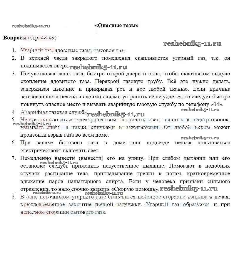 Готовая домашняя работа с ответами по ОБЖ за 5 класс Фролов, Шолох, Юрьева, Мишин Учебник Аст/Астрель 2015 ФГОС - Страницы 48-49