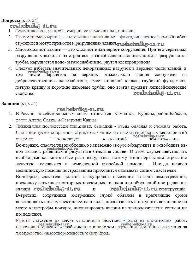 Готовая домашняя работа с ответами по ОБЖ за 5 класс Фролов, Шолох, Юрьева, Мишин Учебник Аст/Астрель 2015 ФГОС - Страницы 54