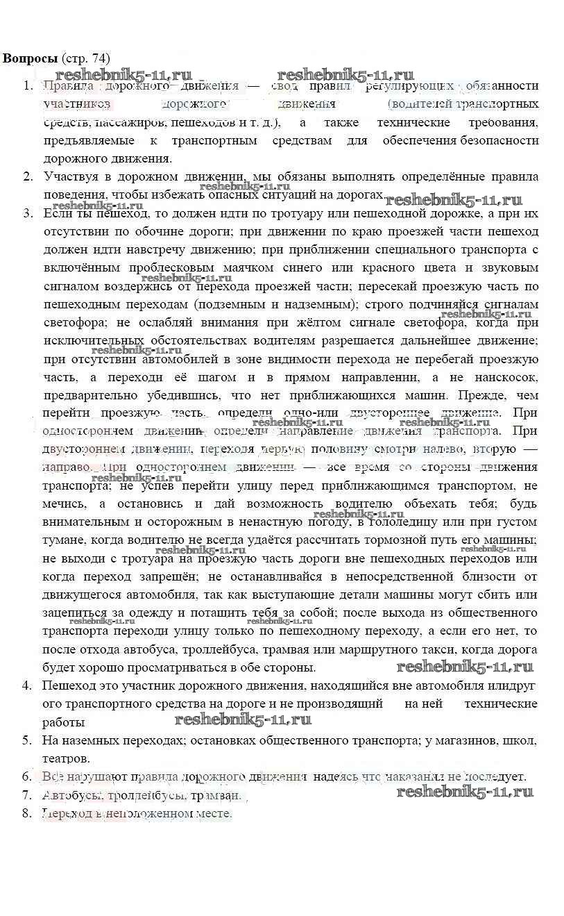 Готовая домашняя работа с ответами по ОБЖ за 5 класс Фролов, Шолох, Юрьева, Мишин Учебник Аст/Астрель 2015 ФГОС - Страницы 74
