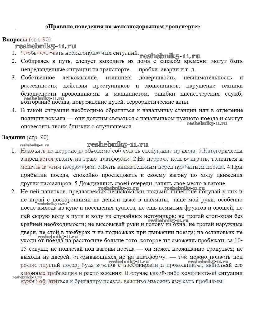 Готовая домашняя работа с ответами по ОБЖ за 5 класс Фролов, Шолох, Юрьева, Мишин Учебник Аст/Астрель 2015 ФГОС - Страницы 90