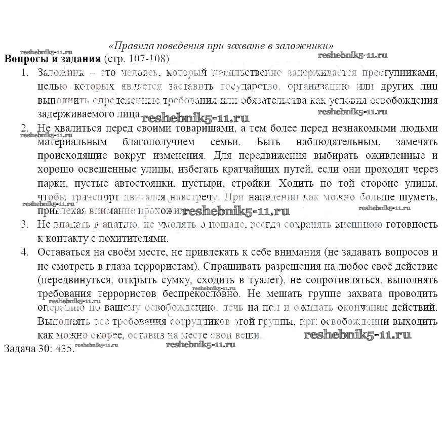 Готовая домашняя работа с ответами по ОБЖ за 5 класс Поляков, Кузнецов, Марков, Латчук Учебник Вертикаль Дрофа 2015 ФГОС - Страницы 107-108