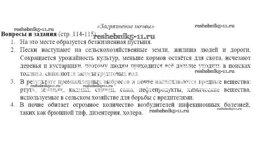 Готовая домашняя работа с ответами по ОБЖ за 5 класс Поляков, Кузнецов, Марков, Латчук Учебник Вертикаль Дрофа 2015 ФГОС - Страницы 114-115