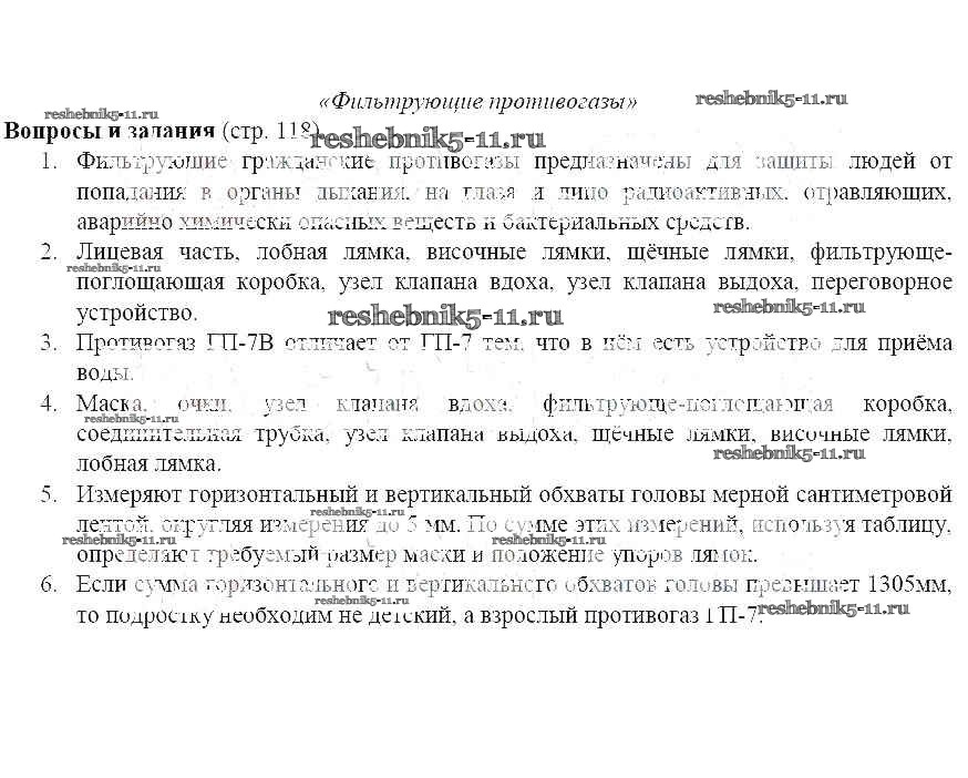 Готовая домашняя работа с ответами по ОБЖ за 5 класс Поляков, Кузнецов, Марков, Латчук Учебник Вертикаль Дрофа 2015 ФГОС - Страницы 118