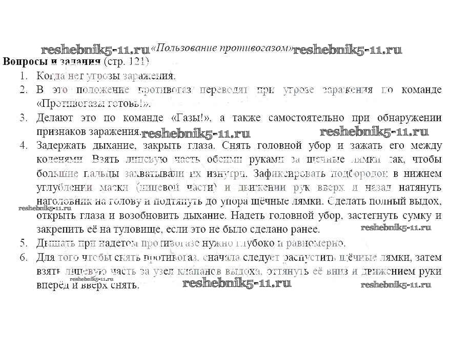 Готовая домашняя работа с ответами по ОБЖ за 5 класс Поляков, Кузнецов, Марков, Латчук Учебник Вертикаль Дрофа 2015 ФГОС - Страницы 121