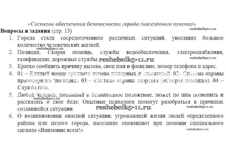 Готовая домашняя работа с ответами по ОБЖ за 5 класс Поляков, Кузнецов, Марков, Латчук Учебник Вертикаль Дрофа 2015 ФГОС - Страницы 13