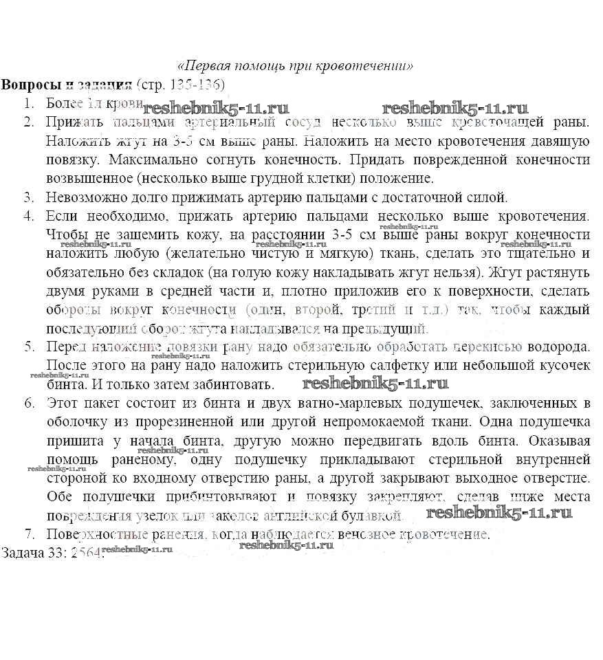 Готовая домашняя работа с ответами по ОБЖ за 5 класс Поляков, Кузнецов, Марков, Латчук Учебник Вертикаль Дрофа 2015 ФГОС - Страницы 135-136