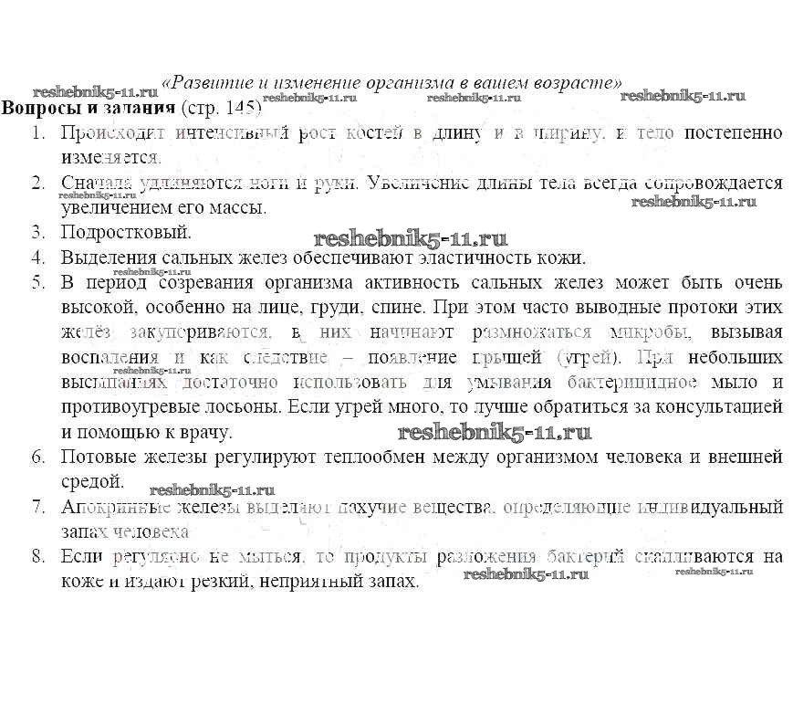 Готовая домашняя работа с ответами по ОБЖ за 5 класс Поляков, Кузнецов, Марков, Латчук Учебник Вертикаль Дрофа 2015 ФГОС - Страницы 145