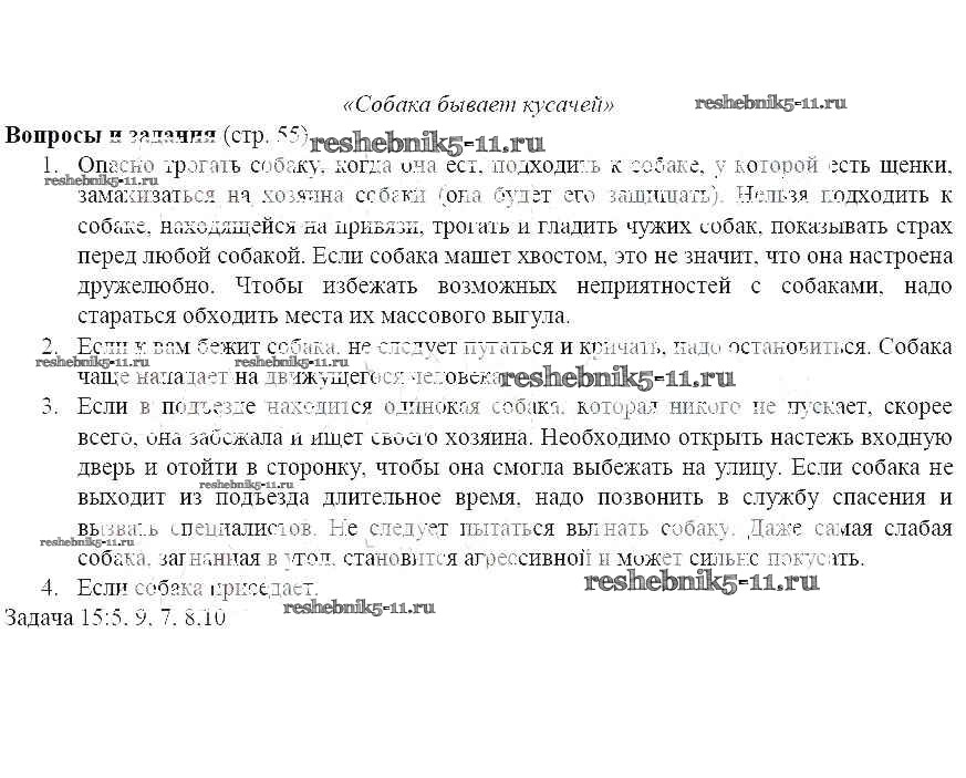 Готовая домашняя работа с ответами по ОБЖ за 5 класс Поляков, Кузнецов, Марков, Латчук Учебник Вертикаль Дрофа 2015 ФГОС - Страницы 55