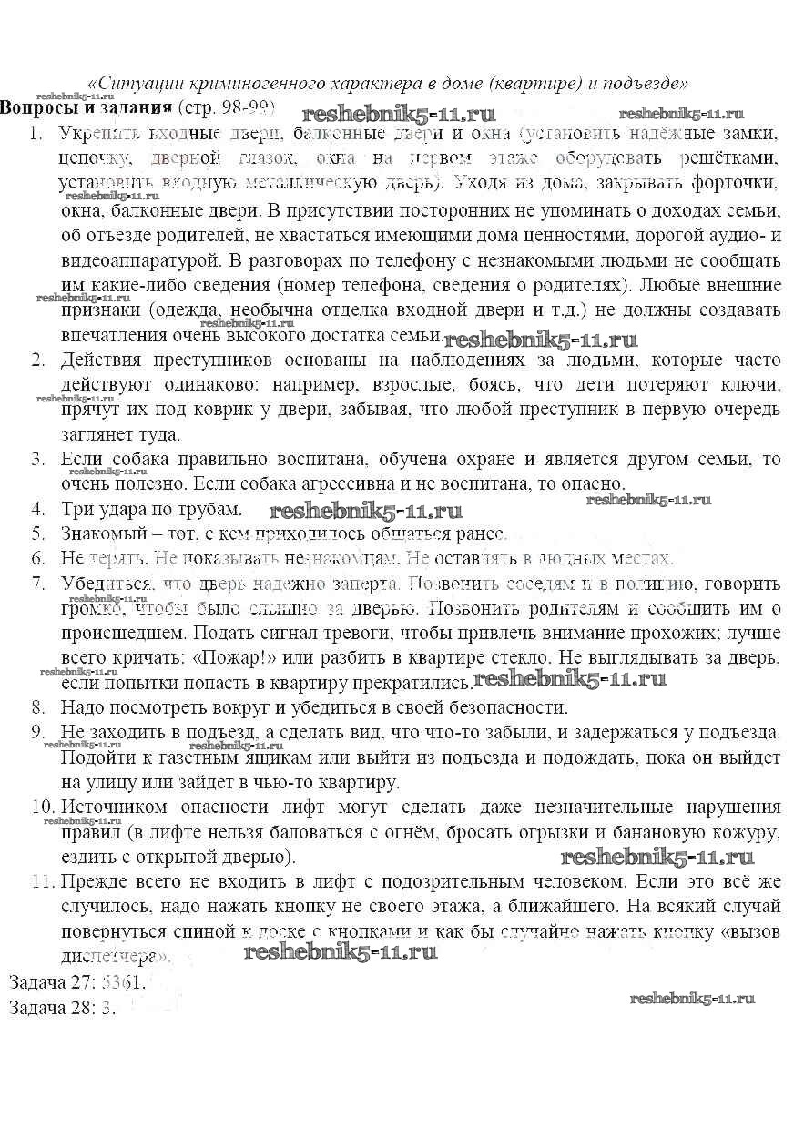 Готовая домашняя работа с ответами по ОБЖ за 5 класс Поляков, Кузнецов, Марков, Латчук Учебник Вертикаль Дрофа 2015 ФГОС - Страницы 98-99
