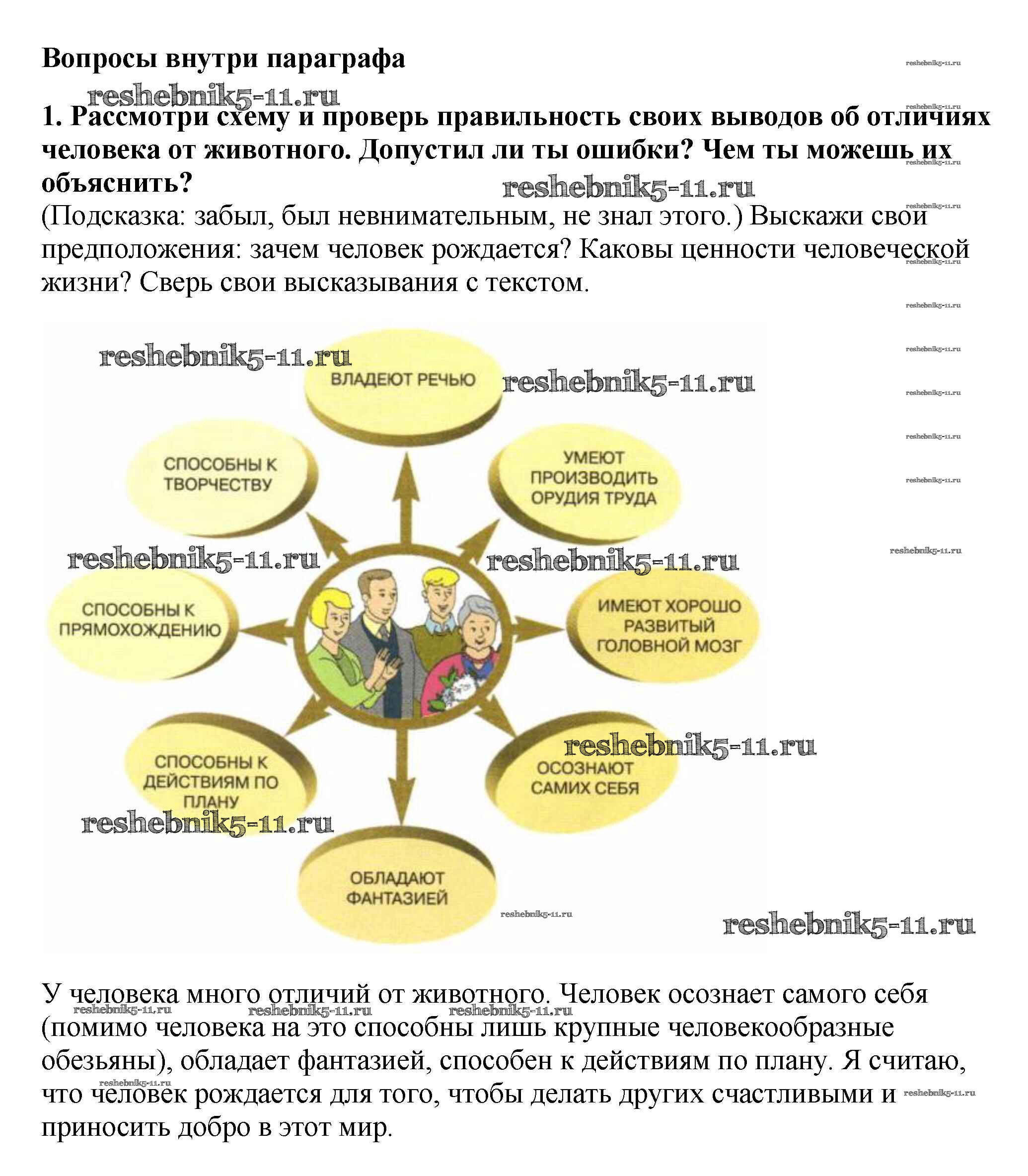 Готовая домашняя работа с ответами по Обществознанию за 5 класс Боголюбов, Виноградова, Городецкая Учебник Просвещение 2013 ФГОС - Вопросы внутри параграфа 1