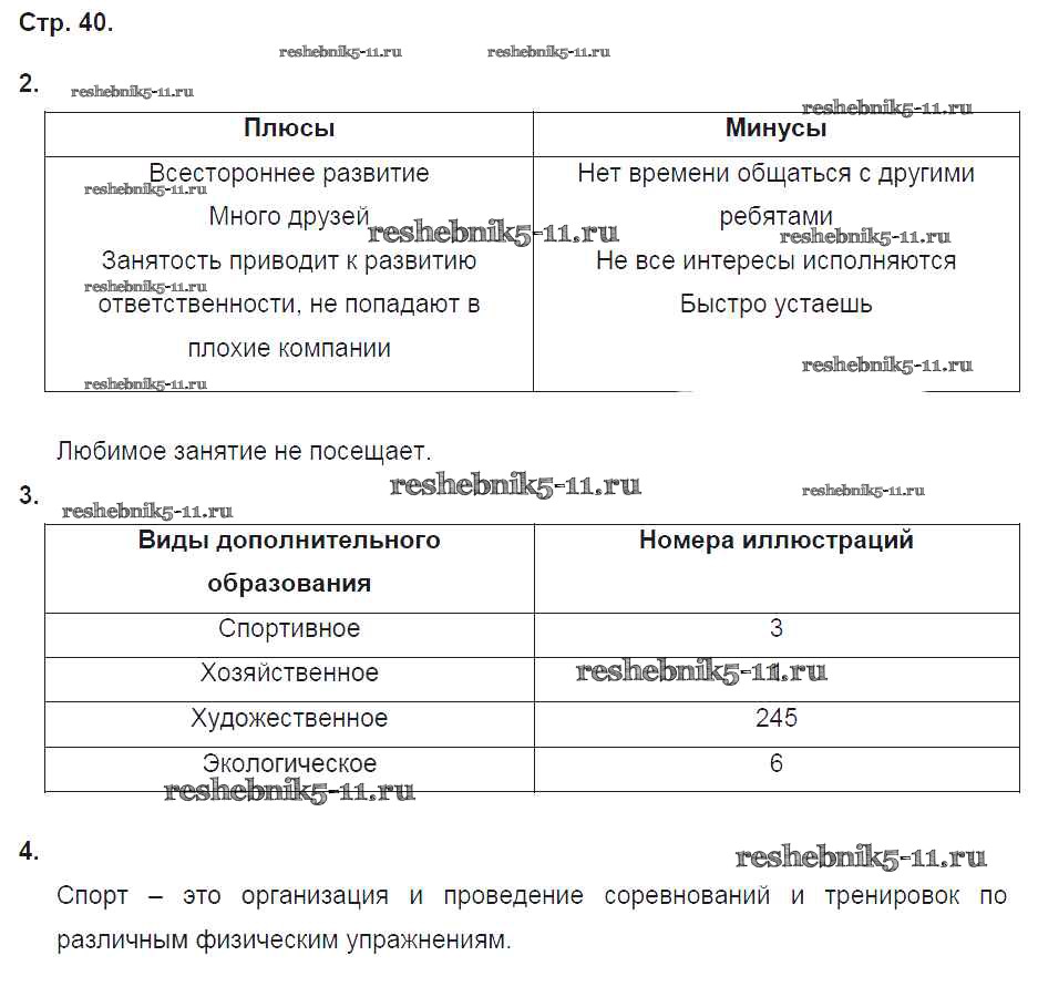 Готовая домашняя работа с ответами по Обществознанию за 5 класс Соболева, Трухина Рабочая тетрадь УМК Вентана-граф 2018 ФГОС - Страницы 40