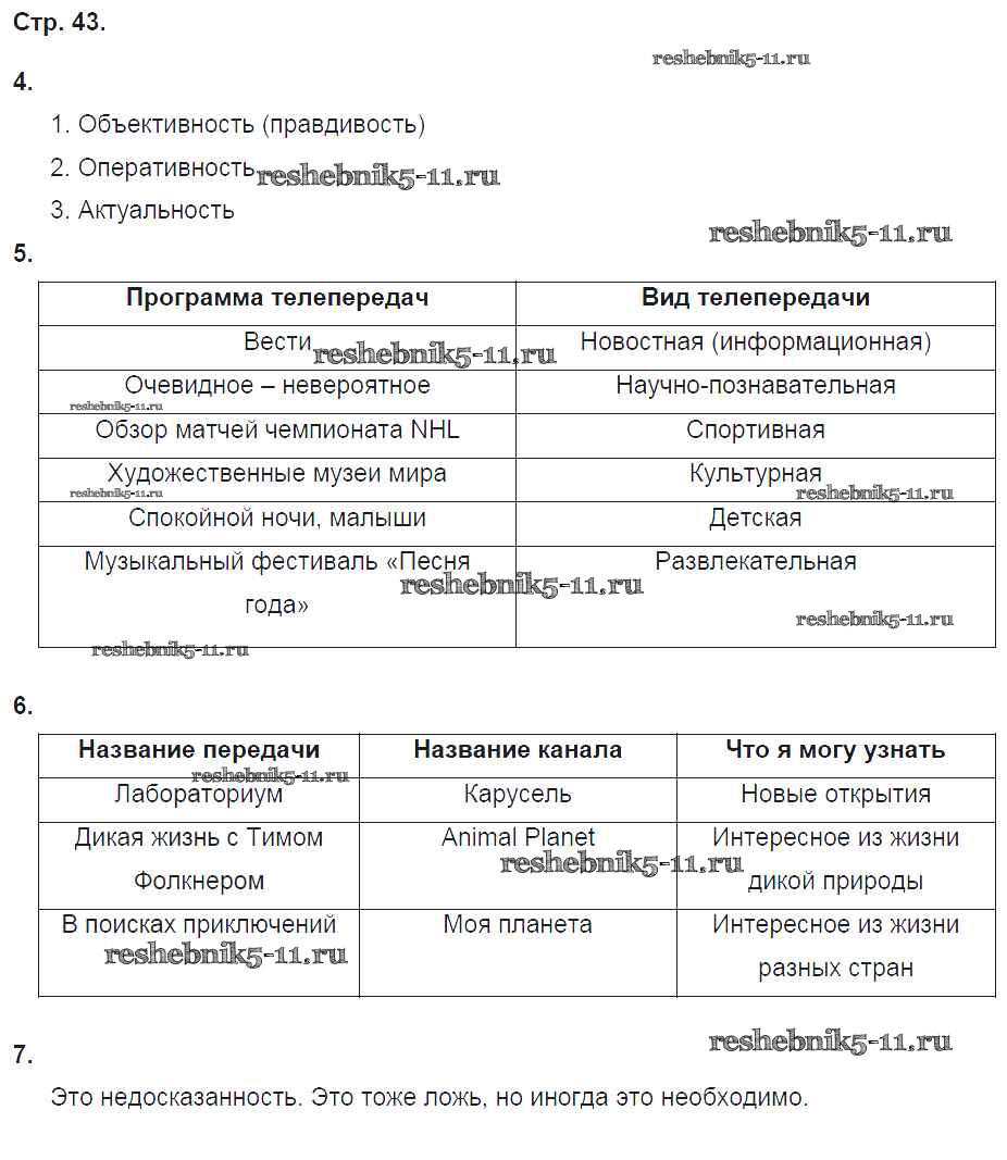 Готовая домашняя работа с ответами по Обществознанию за 5 класс Соболева, Трухина Рабочая тетрадь УМК Вентана-граф 2018 ФГОС - Страницы 43