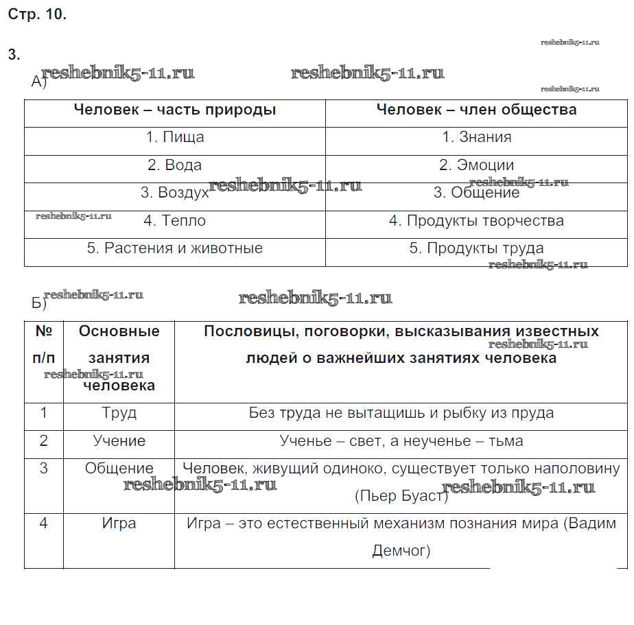Готовая домашняя работа с ответами по Обществознанию за 5 класс Болотина, Мишина Рабочая тетрадь Вертикаль Дрофа 2019 ФГОС - Тема 1. О человеке стр. 10