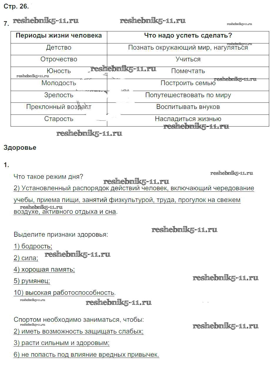 Готовая домашняя работа с ответами по Обществознанию за 5 класс Болотина, Мишина Рабочая тетрадь Вертикаль Дрофа 2019 ФГОС - Тема 1. О человеке стр. 26