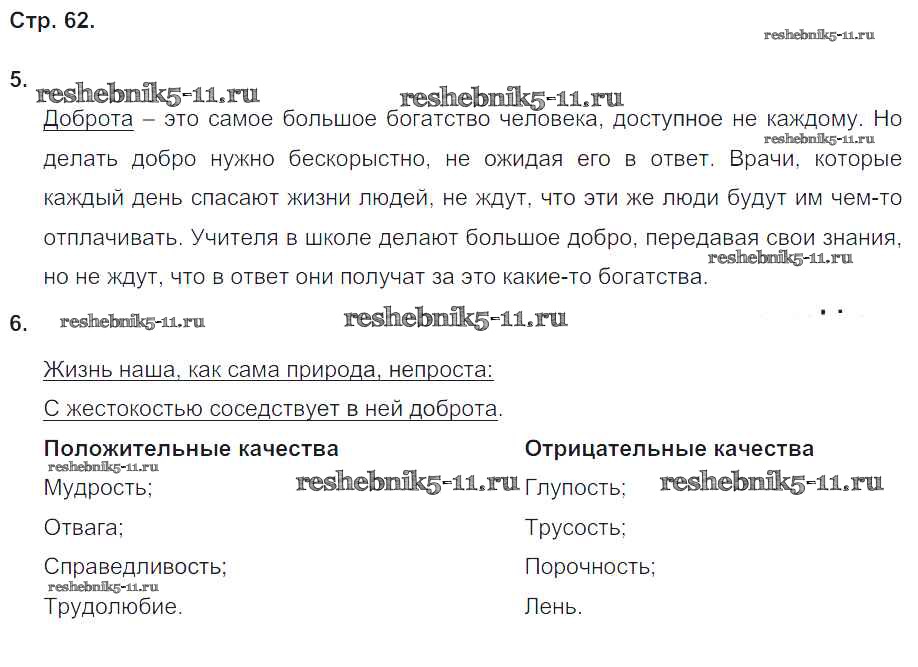 Готовая домашняя работа с ответами по Обществознанию за 5 класс Болотина, Мишина Рабочая тетрадь Вертикаль Дрофа 2019 ФГОС - Тема 1. О человеке стр. 62