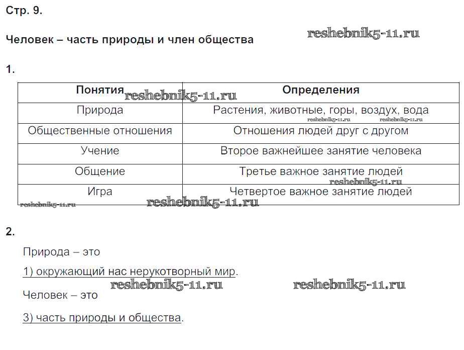Обществознание за 5 класс Болотина Рабочая тетрадь Вертикаль Дрофа тема 1 стр. 9