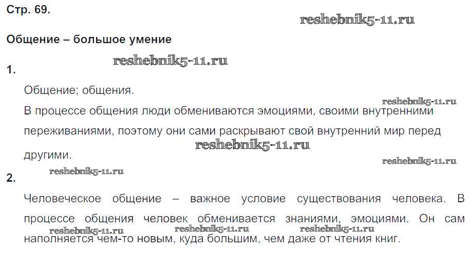 Готовая домашняя работа с ответами по Обществознанию за 5 класс Болотина, Мишина Рабочая тетрадь Вертикаль Дрофа 2019 ФГОС - Тема 2. Общение и окружение человека стр. 69