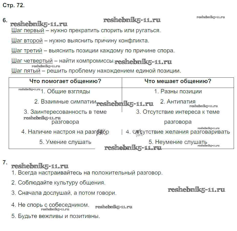 Готовая домашняя работа с ответами по Обществознанию за 5 класс Болотина, Мишина Рабочая тетрадь Вертикаль Дрофа 2019 ФГОС - Тема 2. Общение и окружение человека стр. 72