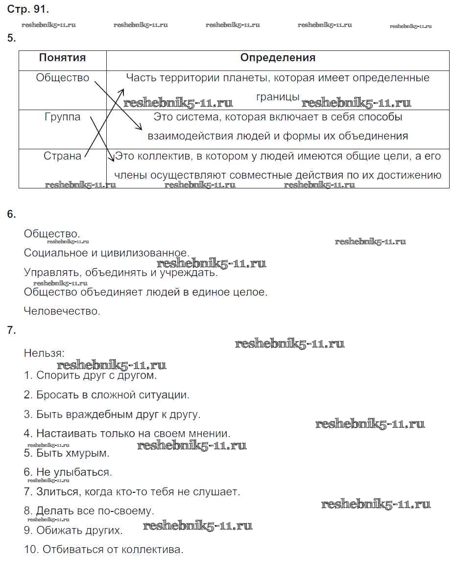 Готовая домашняя работа с ответами по Обществознанию за 5 класс Болотина, Мишина Рабочая тетрадь Вертикаль Дрофа 2019 ФГОС - Тема 2. Общение и окружение человека стр. 91