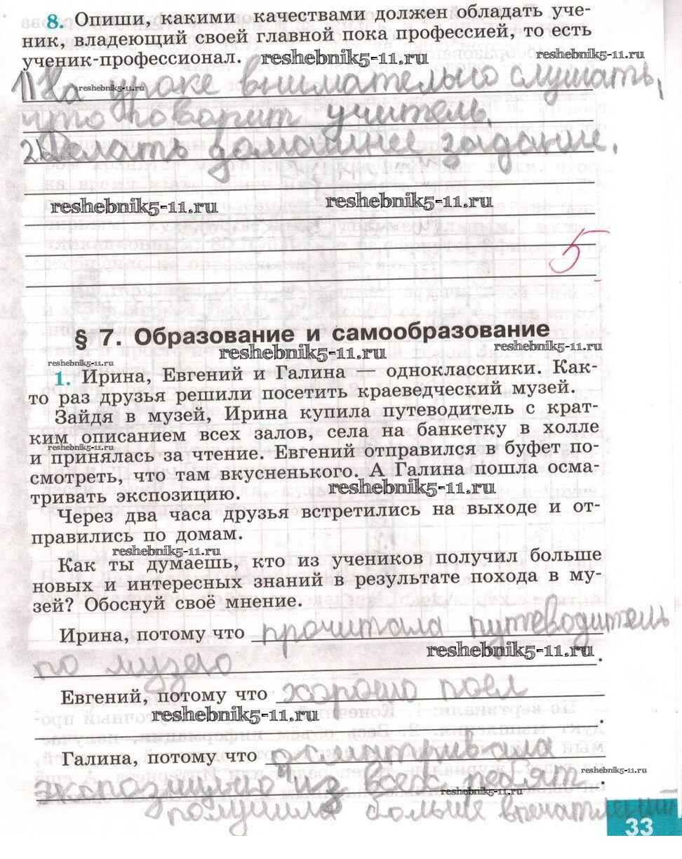 Готовая домашняя работа с ответами по Обществознанию за 5 класс Иванова, Хотеенкова Рабочая тетрадь Просвещение 2018 ФГОС - Страницы тетради 33