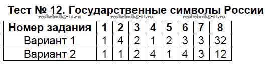 Готовая домашняя работа с ответами по Обществознанию за 5 класс Волкова Контрольно-измерительные материалы (КИМ) ВАКО 2017 ФГОС - Тесты Тест-12. Государственные символы России