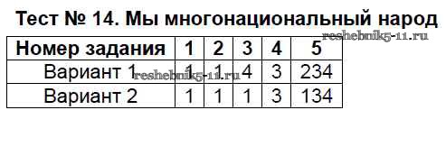 Готовая домашняя работа с ответами по Обществознанию за 5 класс Волкова Контрольно-измерительные материалы (КИМ) ВАКО 2017 ФГОС - Тесты Тест-14. Мы многонациональный народ