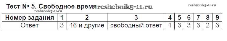 Решебник / тест / тест №5. Свободное время
