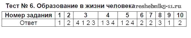 Решебник / тест / тест №6. Образование в жизни человека