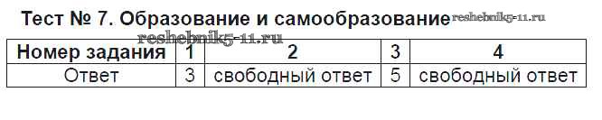 Готовая домашняя работа с ответами по Обществознанию за 5 класс Лебедева Тесты УМК Экзамен 2016 ФГОС - Тесты Тест №7. Образование и самообразование